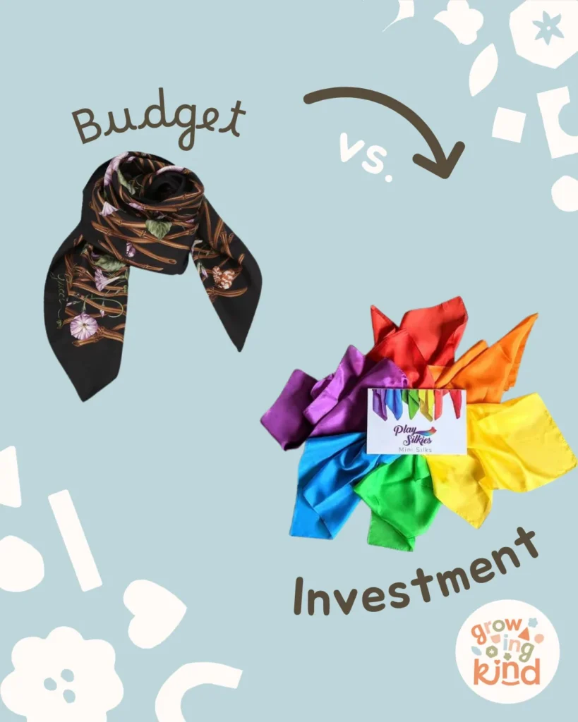 Silks: sort through your op shop and find old silk scarves to use as an open-ended resource. Silks can be used to wrap up babies, hide objects in, as a base for small world play and so much more.