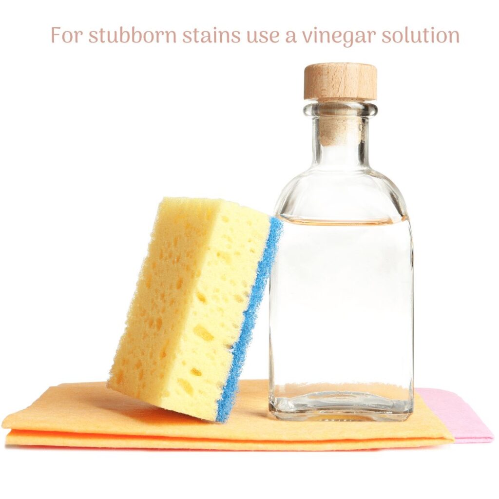 - For extra stubborn stains, you can use diluted white vinegar to clean the felt. Again only dab, do not rub.