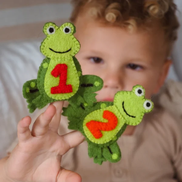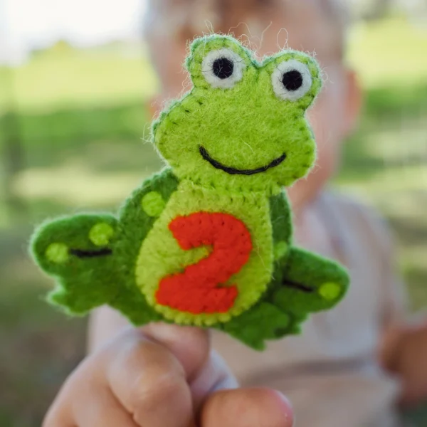 Bring the beloved nursery rhyme “5 Little Speckled Frogs” to life with this enchanting felt finger puppet set by Tara Treasures. Handmade from 100% New Zealand wool, these five adorable frogs are the perfect companions for story time, counting games, and imaginative play.