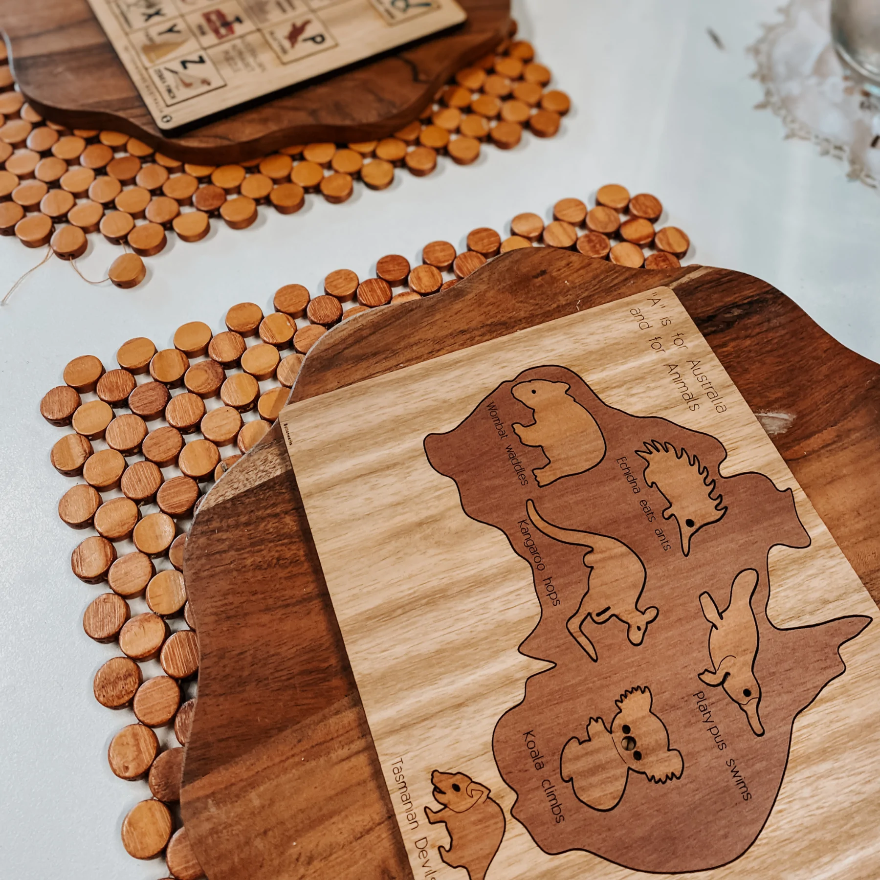 Made from sustainably sourced Australian timber, each puzzle is as unique as the trees it comes from. A wonderful educational resource that supports fine motor skills, cognitive development, and imaginative play.