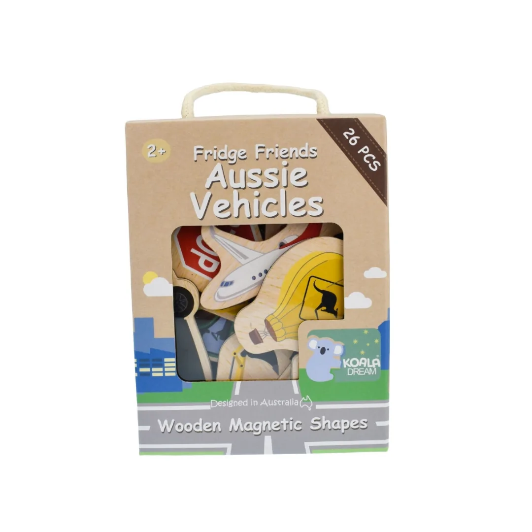 Take playtime on the move with the Fridge Friends Magnetic Transport Vehicles from Koala Dream. This fun wooden magnet set includes 26 colourful transport pieces, featuring a range of vehicles such as construction trucks, planes, boats, and more.