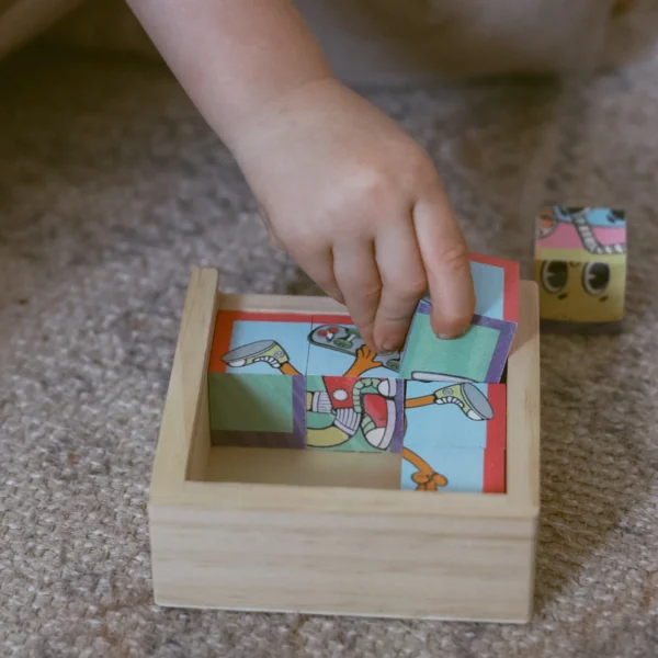 Each puzzle features a different coloured border to help little ones solve each face independently, building their confidence along the way. With a wooden tray to keep things neat and tidy and a handy reference pamphlet included, this puzzle is a great option for home, travel, or quiet time play.