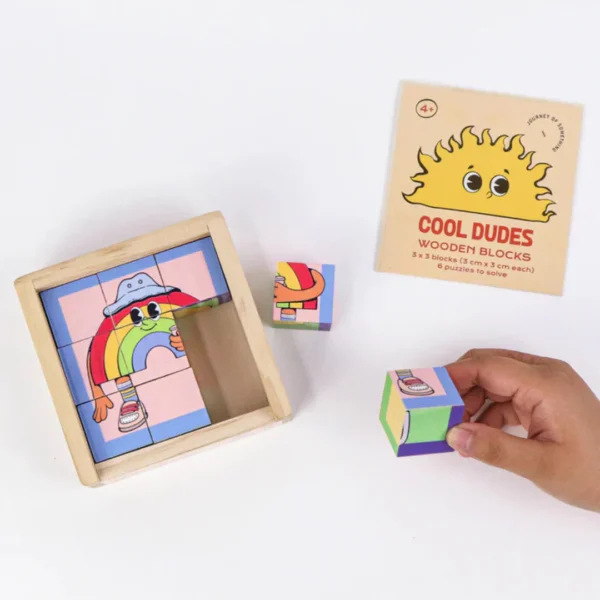 Get ready to flip, twist, and match your way through six times the fun with the Cool Dudes 6-in-1 Wooden Block Puzzle! Each side of these chunky wooden blocks reveals a different cool character, so kids can solve six separate puzzles in one tidy little tray.