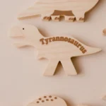 Each wooden dinosaur features its name engraved on the back, helping children begin to recognise and identify different dinosaur species while they play. Whether children are creating their own dinosaur adventures, building small world landscapes or learning new names, this set encourages both imagination and early learning.