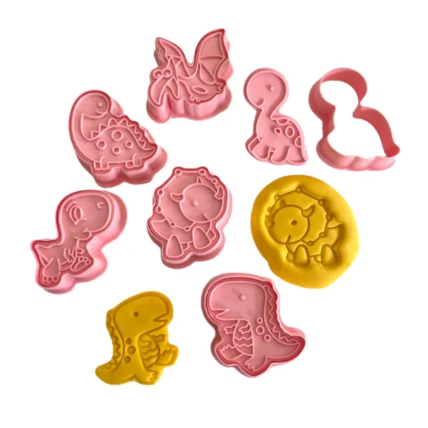 Includes 6 dinosaur-themed stampers and 6 matching cutters