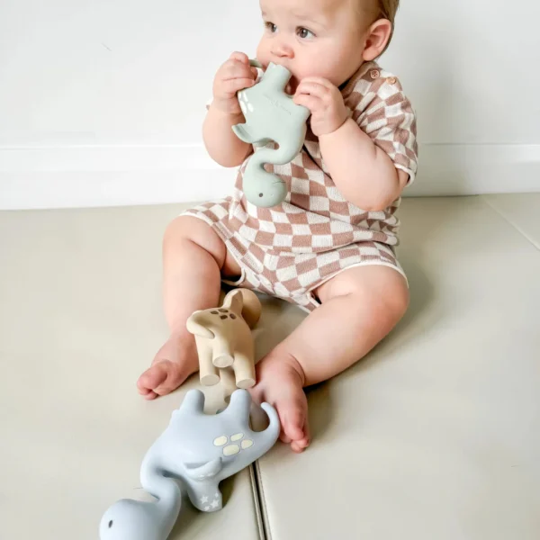 Designed for tiny hands, Diplo’s size and shape make it easy to grasp and satisfying to chew. The multiple angles and textures are perfect for soothing sore gums and encouraging tactile exploration. Diplo’s friendly dragon-dino hybrid look adds a sprinkle of whimsy, turning teething into a moment of magical play.
