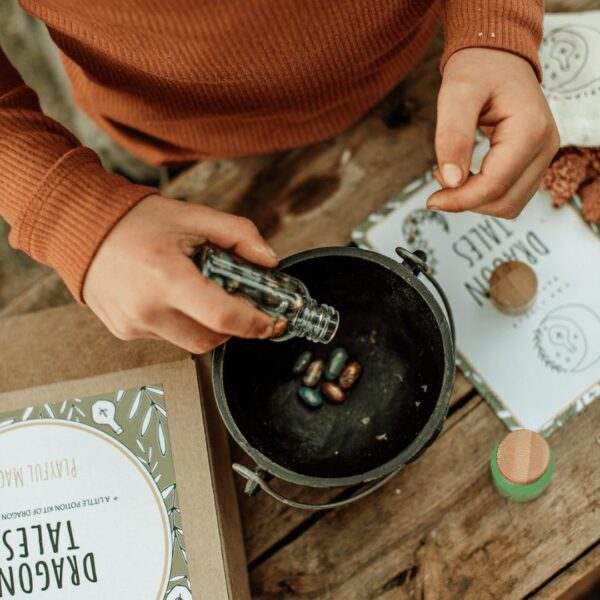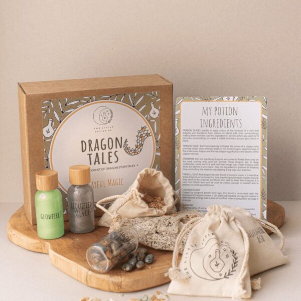 Throughout cultures and centuries, dragons have stirred the imagination—now children can create their own fire-breathing stories using ingredients that fizz, shimmer and sparkle! Whether concocting fiery brews, dragon-scale glitter, or treasure potions, this kit encourages imaginative play, fine motor skill development, and mindful creativity.