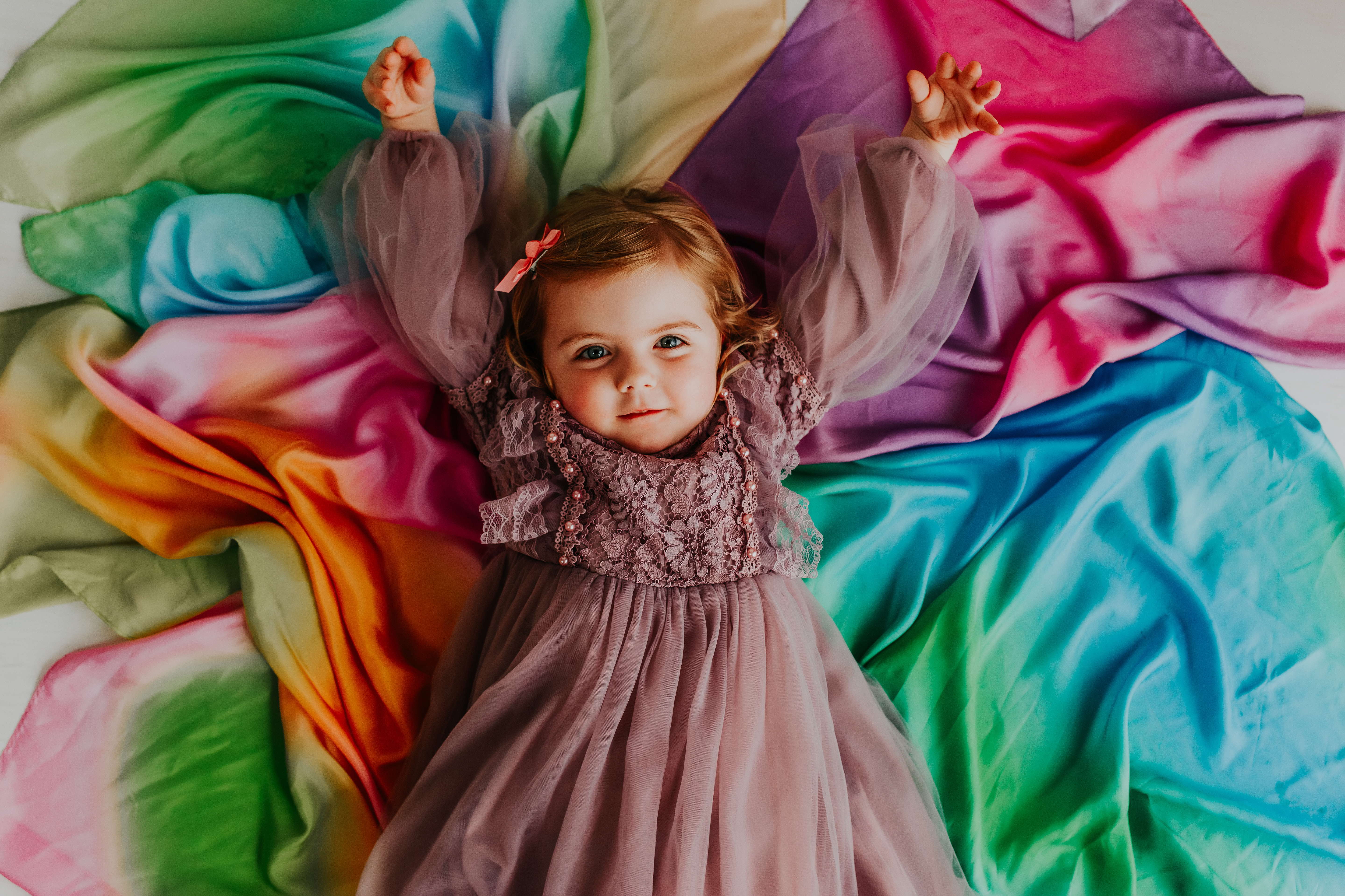 More than just a cape, a play scene, or a game, Play Silkies support the growth of the whole child. They promote cognitive development, fine and gross motor skills, and help foster family bonding through joyful, shared experiences. Children are naturally drawn to their bright colours and soft, flowing texture, inviting endless opportunities for imaginative and sensory-rich play.