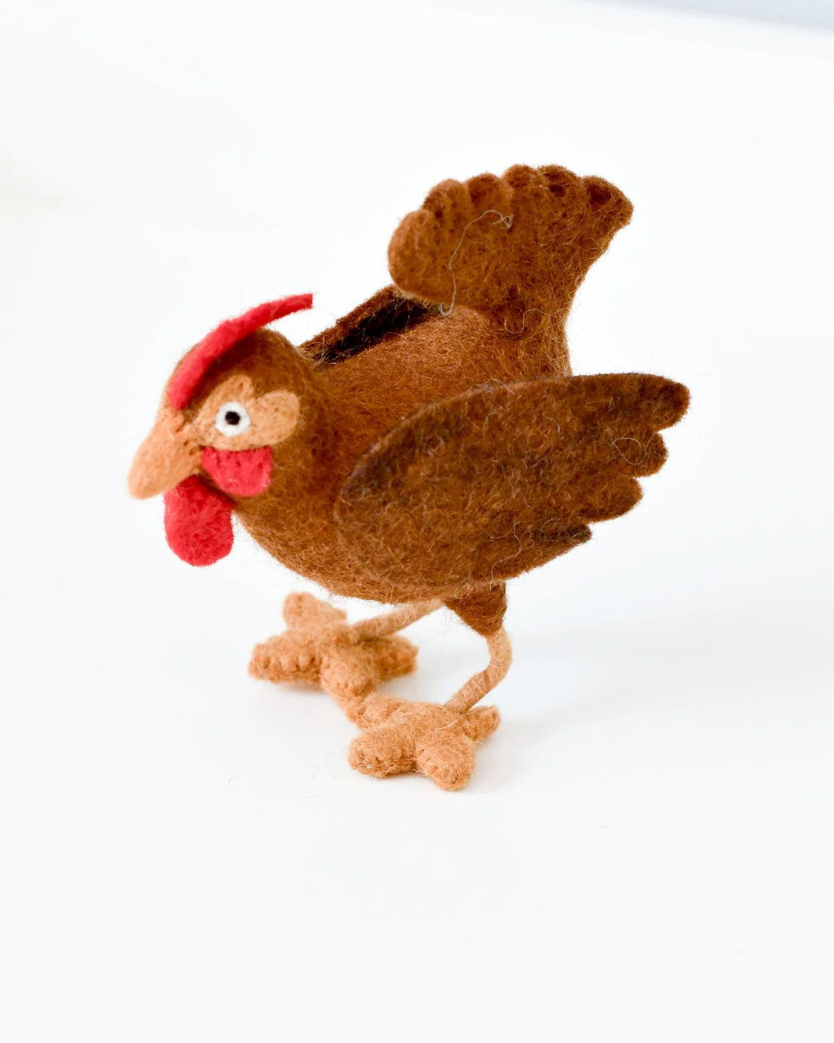 Lovingly handcrafted from 100% natural wool and dyed with non-toxic colours, this hen is safe, durable, and made to last. Pair it with other farm animals from our felt collection to create a full barnyard world of fun.