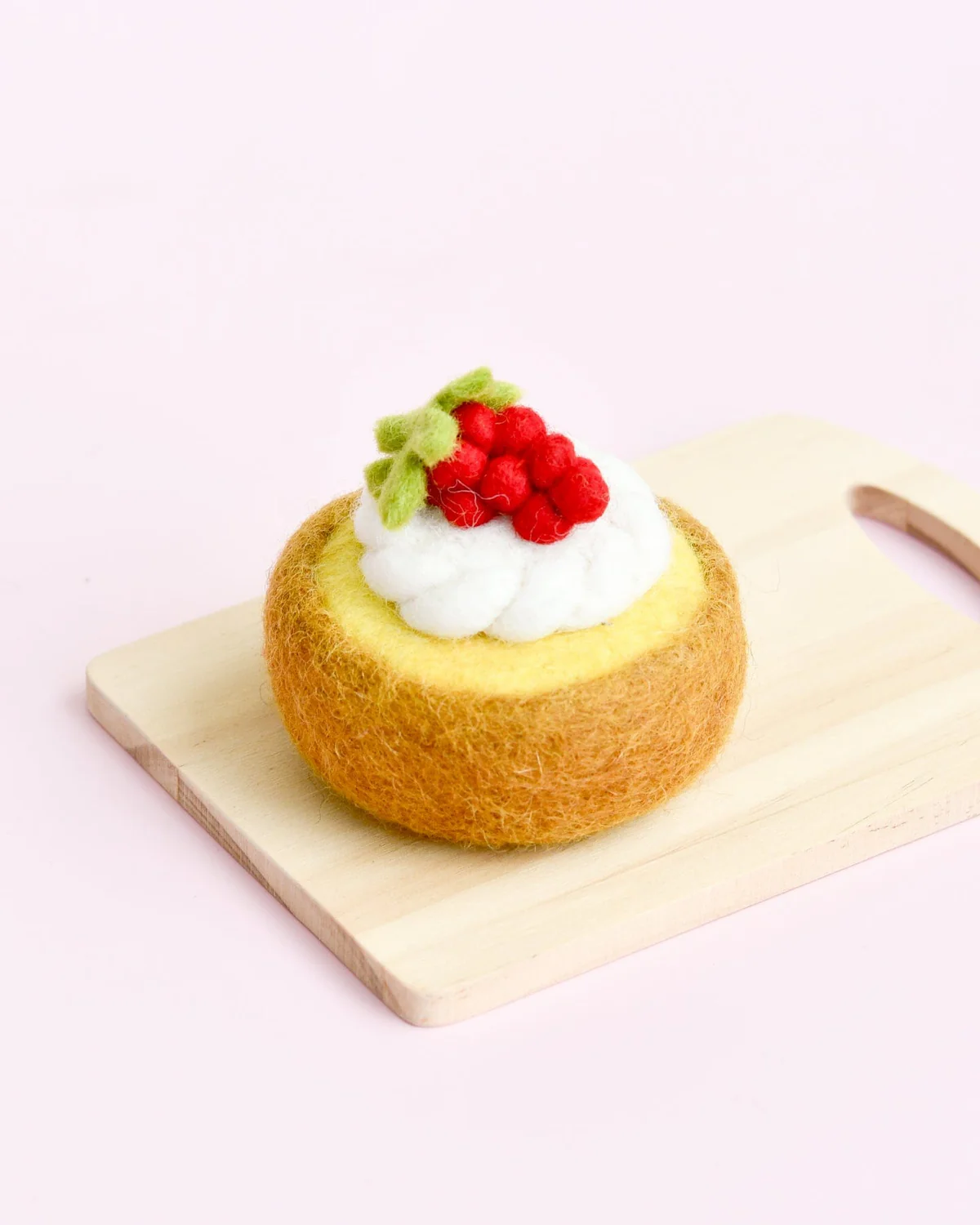 Meticulously needle-felted from dense wool and dyed with non-toxic colours, each tart is safe, durable, and designed for endless imaginative play. Perfectly sized for little hands, it makes a wonderful addition to play kitchens, pretend cafés, and picnic setups.