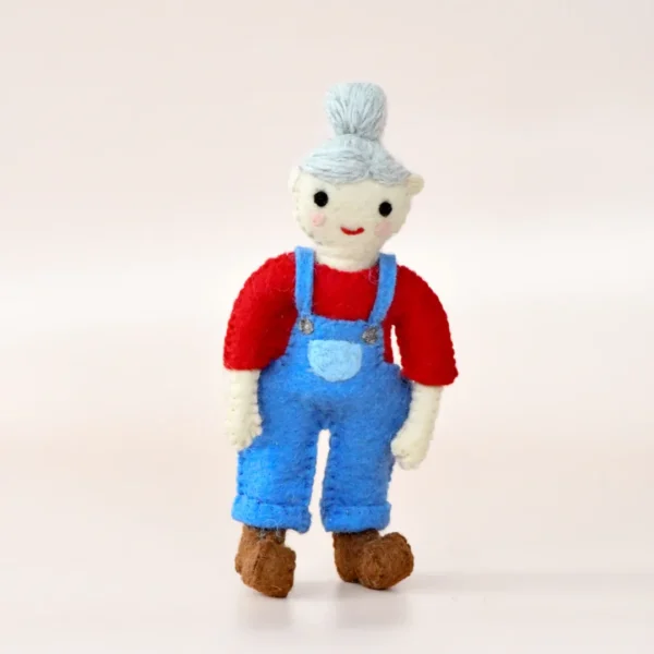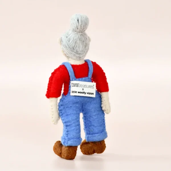 The Felt Old Macdonald Female Farmer Toy by Little Woolly Vision x Tara Treasures brings inclusivity and charm to the beloved Old Macdonald Had a Farm song. Dressed in a vibrant outfit with a wide-brimmed hat, this friendly female farmer is ready to tend animals, plant crops, and join in on sing-along fun.