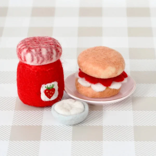 With interactive elements like a removable jam jar lid and build-your-own scones, children can practise fine motor skills as they layer soft felt cream and jam between the scone halves. The included dish of fluffy cream adds even more creative fun, inviting your child to build and serve custom scone creations.