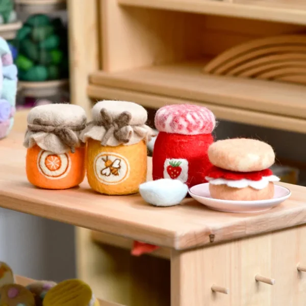 Serve up a slice of imaginative play with our Felt Strawberry Jam and Scones Set, lovingly handcrafted for the sweetest pretend afternoon tea. This charming felt play food set is a perfect addition to any play kitchen or café setup.