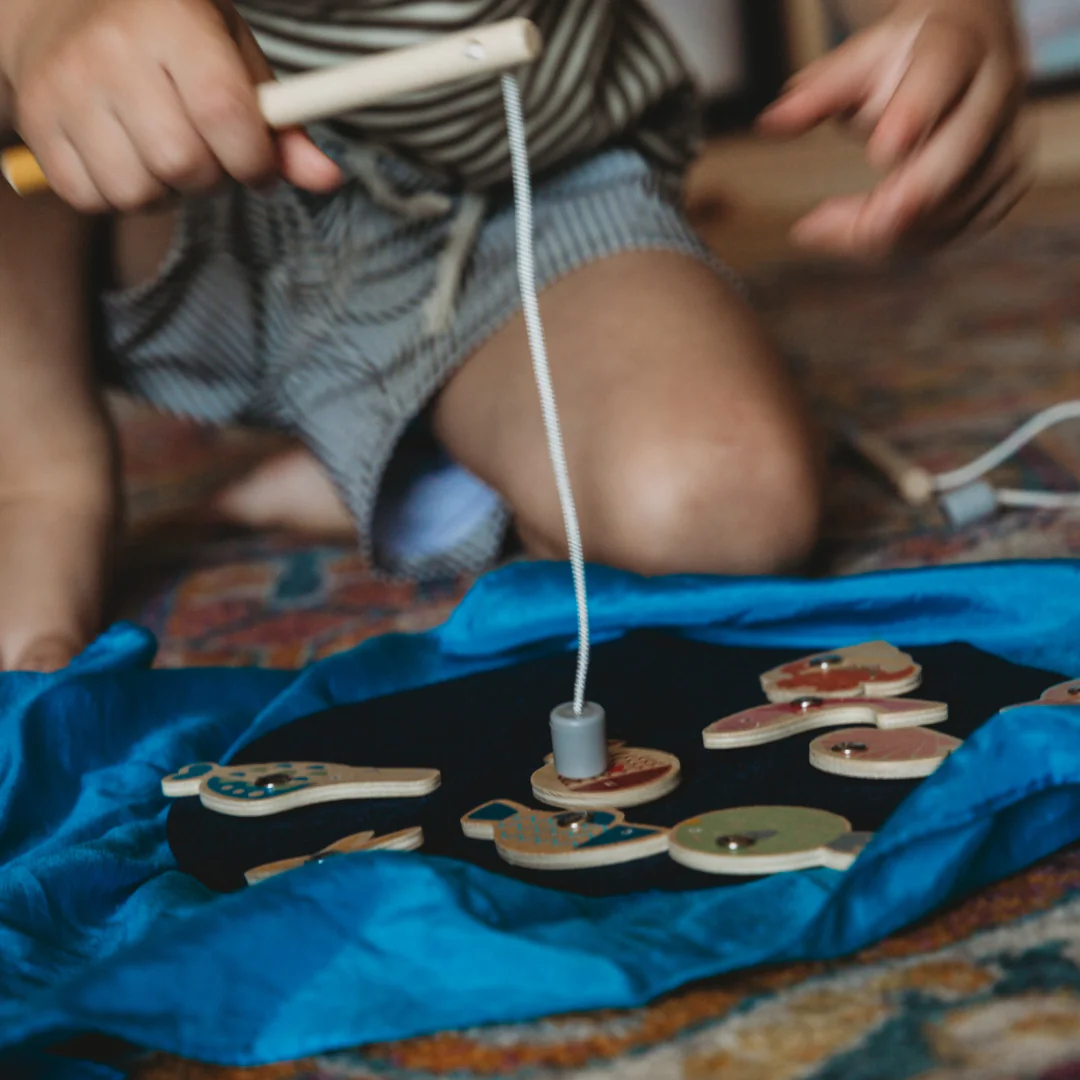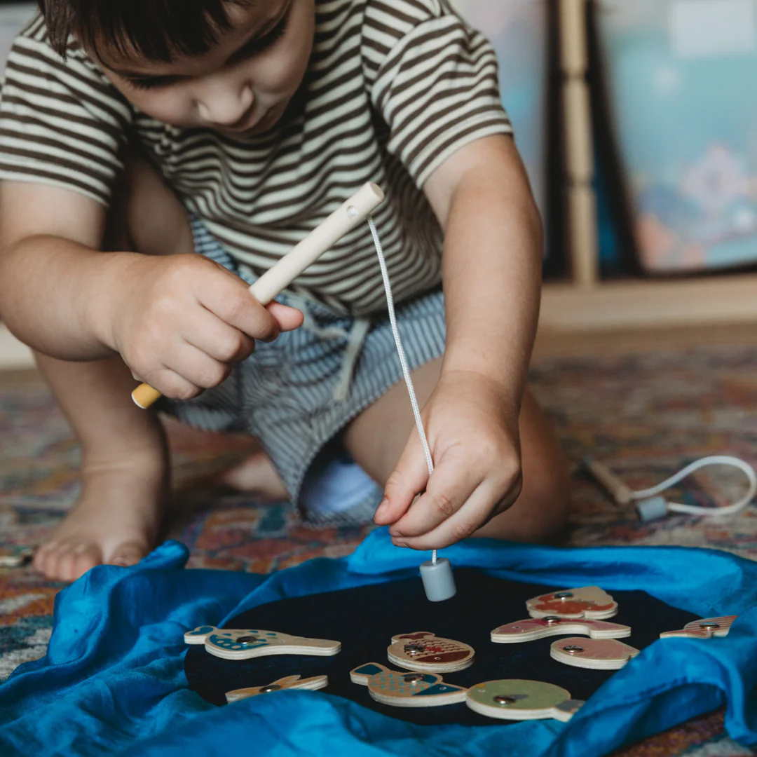 Dive into the deep blue with the Magnetic Fishing Game by Calm & Breezy, a fun and challenging 2-player game that’s perfect for enhancing fine motor skills and patience. This exciting game encourages children to race against each other to catch as many sea creatures as possible using magnetic fishing rods. The twist? No hands allowed! Players must use their magnetic rods to fish for 12 natural timber sea creatures, each painted with child-safe, non-toxic paint, and try to outsmart their opponent.