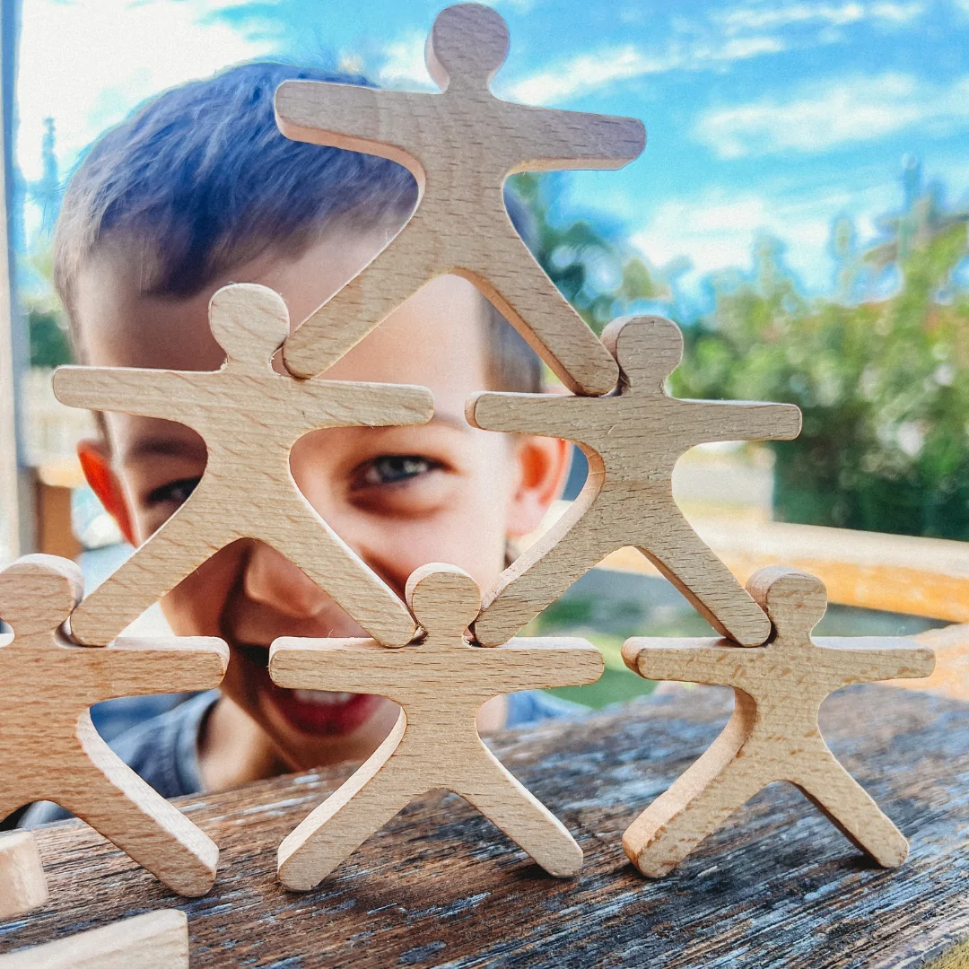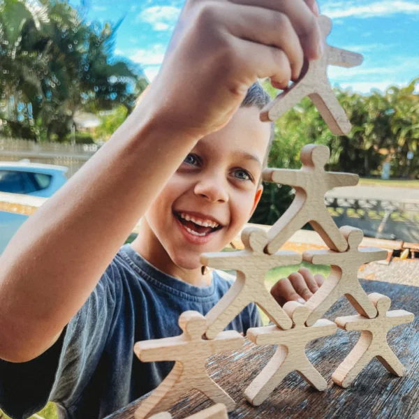 This 10-piece balancing people set is a delightful way for children to explore coordination, problem-solving, and imaginative play. Perfect for building towers, balancing challenges, and inventing stories, this wooden toy sparks creativity and fun.