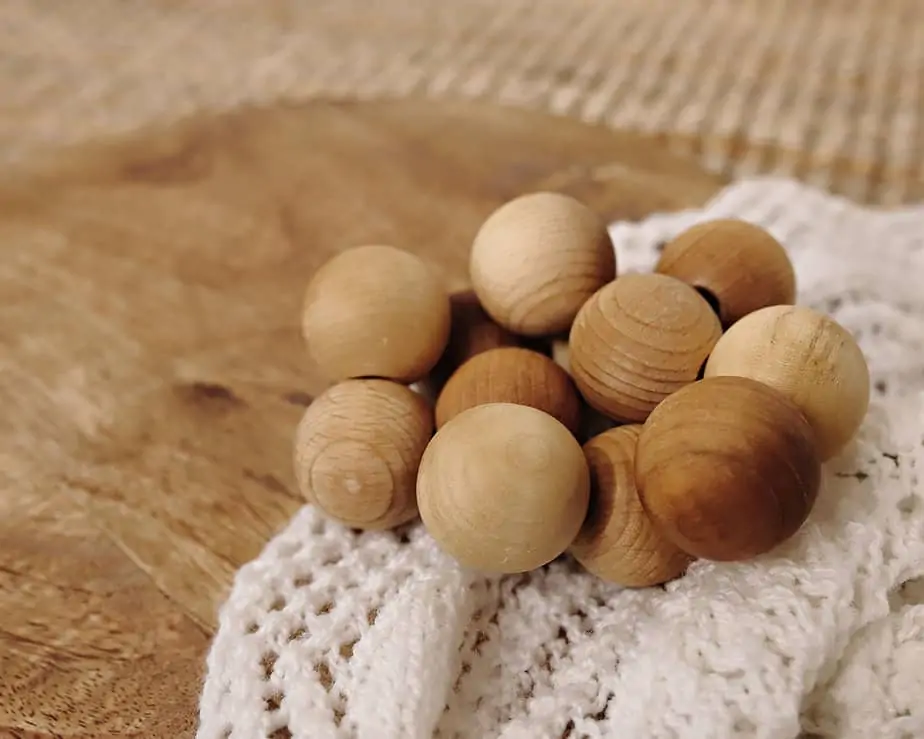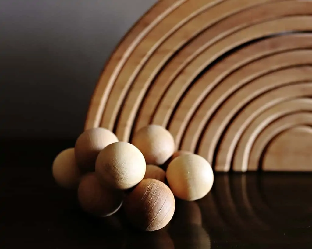 Wooden beads grasper by Grimm’s Spiel & Holz. A tactile delight, will be enjoyed by both children and adults alike. The wooden balls are joined together by an elasticized heavy duty string. Rolling the balls around and over each other is an ideal de-stresser.