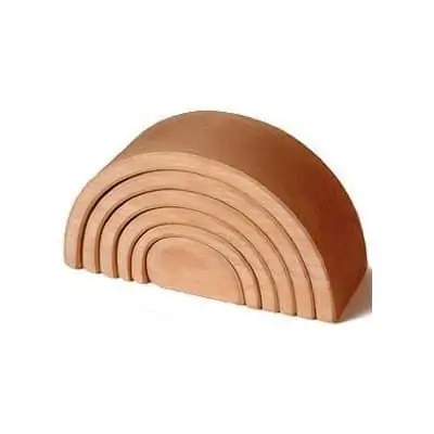 The Grimms Spiel and Holz medium natural tunnel is an award winning piece. The Natural Rainbow is considered an open-ended toy; meaning that it has multiple uses and no predetermined right or wrong. The rainbow is versatile and can be used to create lots of play experiences. Suitable for children aged 2 years+ due to the smallest part. The medium rainbow has 6 natural wooden pieces and measures approximately 17.1cm wide x 8.7cm tall x 6.5cm wide. The Grimms range is made from sustainably managed lime wood from European forests and finished with non-toxic water-based oils.