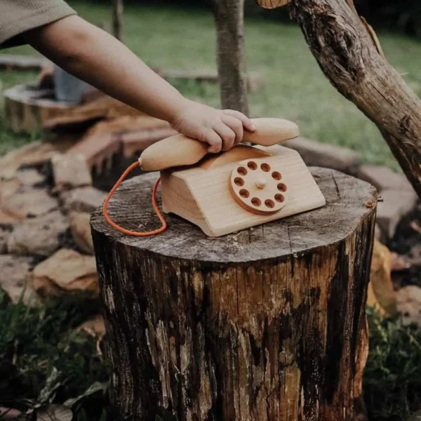 Hand-crafted from alder wood and finished with a non-toxic plant based oil finish. The Grimm’s wooden telephone is a delightful toy that can inspire imaginative pretend play, and is the perfect addition to any child’s play room.
