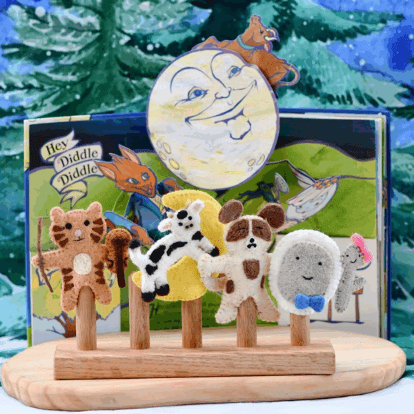 Step into a world of nursery rhyme wonder with Tara Treasures’ Hey Diddle Diddle Finger Puppets Set! 🎶 Featuring the beloved characters from the classic rhyme — the Cat with his Fiddle, the Cow that jumped over the Moon, the Little Dog who laughed, the Dish, and the Spoon — this whimsical set is perfect for bringing one of childhood’s favourite verses to life. 🐄🐕