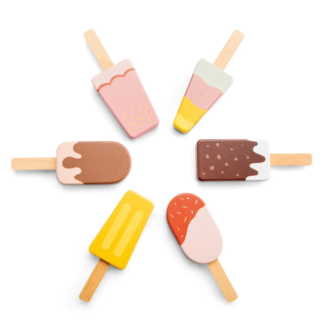 Perfect for play kitchens, market stalls, or ice cream shop setups, the Ice Lollies set adds a cheerful pop of colour and a dash of sweetness to any pretend play collection.