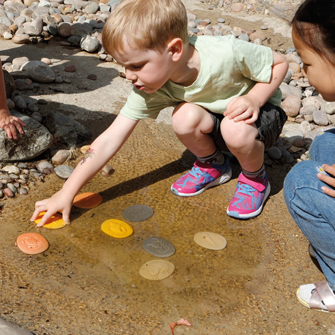 Made from a unique stone and resin mix, they are durable for indoor and outdoor play, making them perfect for sand, water, mud kitchens, or sensory trays. Children can touch, feel, and trace the raised designs, encouraging both fine motor development and storytelling adventures.