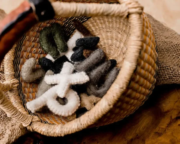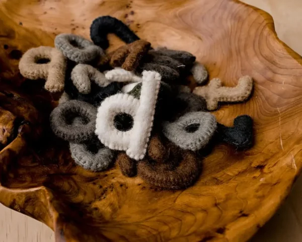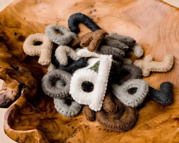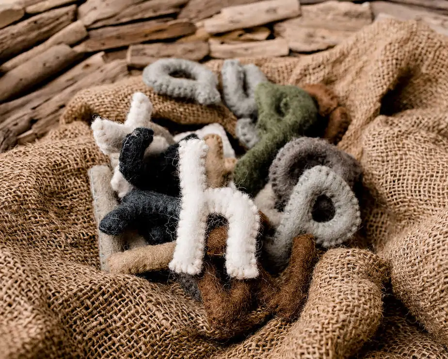 Each letter is crafted from 100% natural wool using non-toxic, biodegradable dyes, and comes in calming natural tones. Pair with a Felt Mat, or mix and match with uppercase letters and numbers for extended learning.