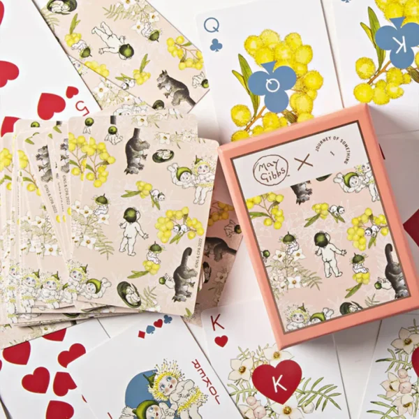 This premium 52-card deck plus 2 jokers features unique, custom-designed face cards inspired by the iconic world of Snugglepot, Cuddlepie, and the Gumnut Babies. Whether you are playing Snap, Go Fish, or a serious round of Poker, these cards add a whimsical spark to every shuffle and deal.