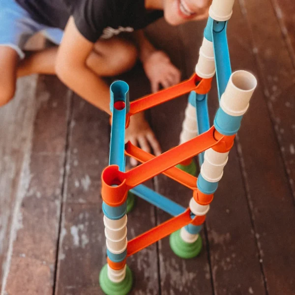 This Marble Run set is the perfect starter kit for your child’s creative construction journey, whether it’s in the classroom or playroom! Made from 100% biodegradable materials, it encourages kids to build, explore, and apply critical thinking skills. Watch as your young engineer experiments with different structures to achieve the fastest or slowest marble runs, introducing them to the fascinating concepts of force and gravity.