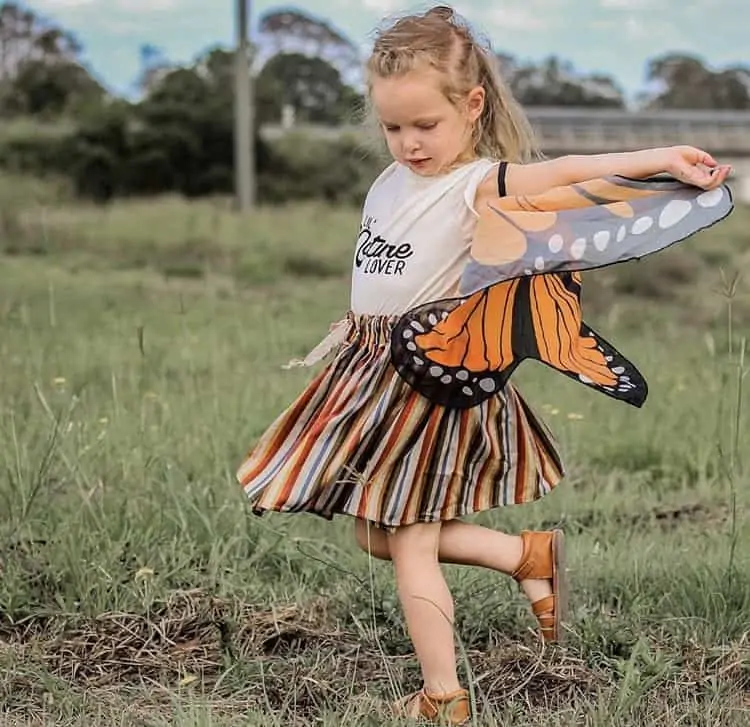 We love the butterfly wings. The little one is flap flap flapping around all the time. Just beautiful and great quality too.