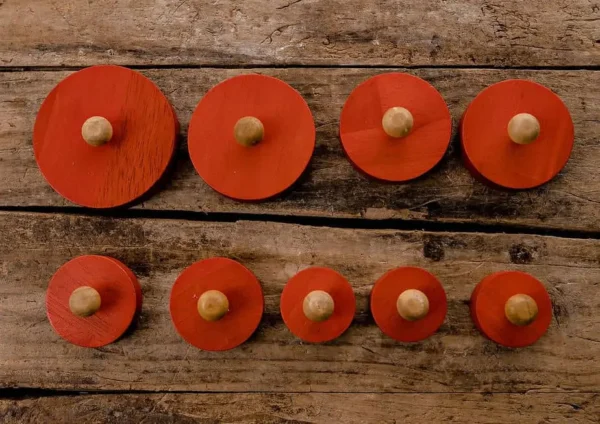Discover the beauty in simplicity with this Montessori-inspired Circle Puzzle. Designed with peg handles that are just the right size for little hands, this puzzle helps toddlers develop size discrimination, coordination, and pincer grip skills.