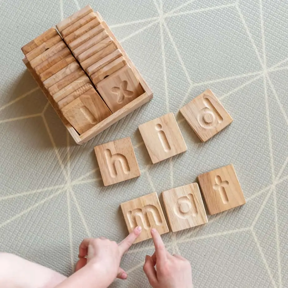 Perfect for Montessori-inspired learning, homeschooling, and early literacy activities, these durable wooden alphabet tiles make learning letters and words fun & engaging!