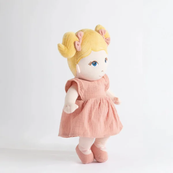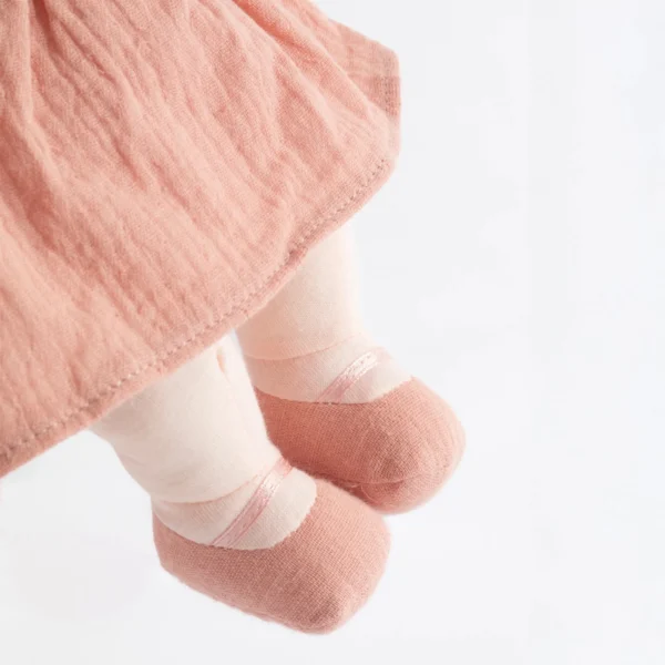 Her 100% cotton muslin dress is removable, encouraging hand-eye coordination and independence as little ones learn to dress and undress her. Whether tucked into a nappy bag or resting in a cot, Lola is a delightful first doll that brings comfort, security, and joy to tiny hands.