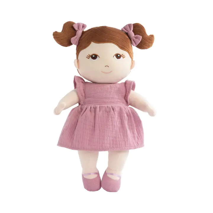 Designed with love and made to be treasured, Violet features a soft body that is perfect for cuddles and gentle play. Her kind embroidered face and removable 100% cotton muslin dress make her both charming and safe for even the tiniest hands.