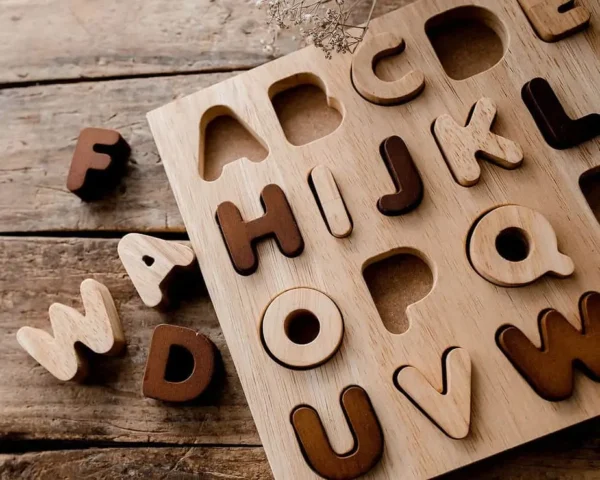 ✅ Two-tone wooden alphabet puzzle with 26 letters