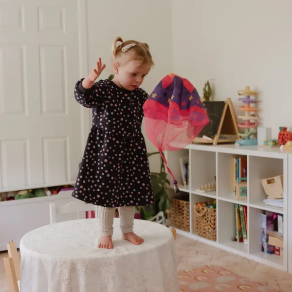 Send your Flying Hero soaring through the sky! These wooden hand-throwing parachutists are designed to glide and float, challenging kids to see how long they can keep them in the air. With a simple flick of the wrist, this timeless toy inspires hours of active fun while building coordination and outdoor play.