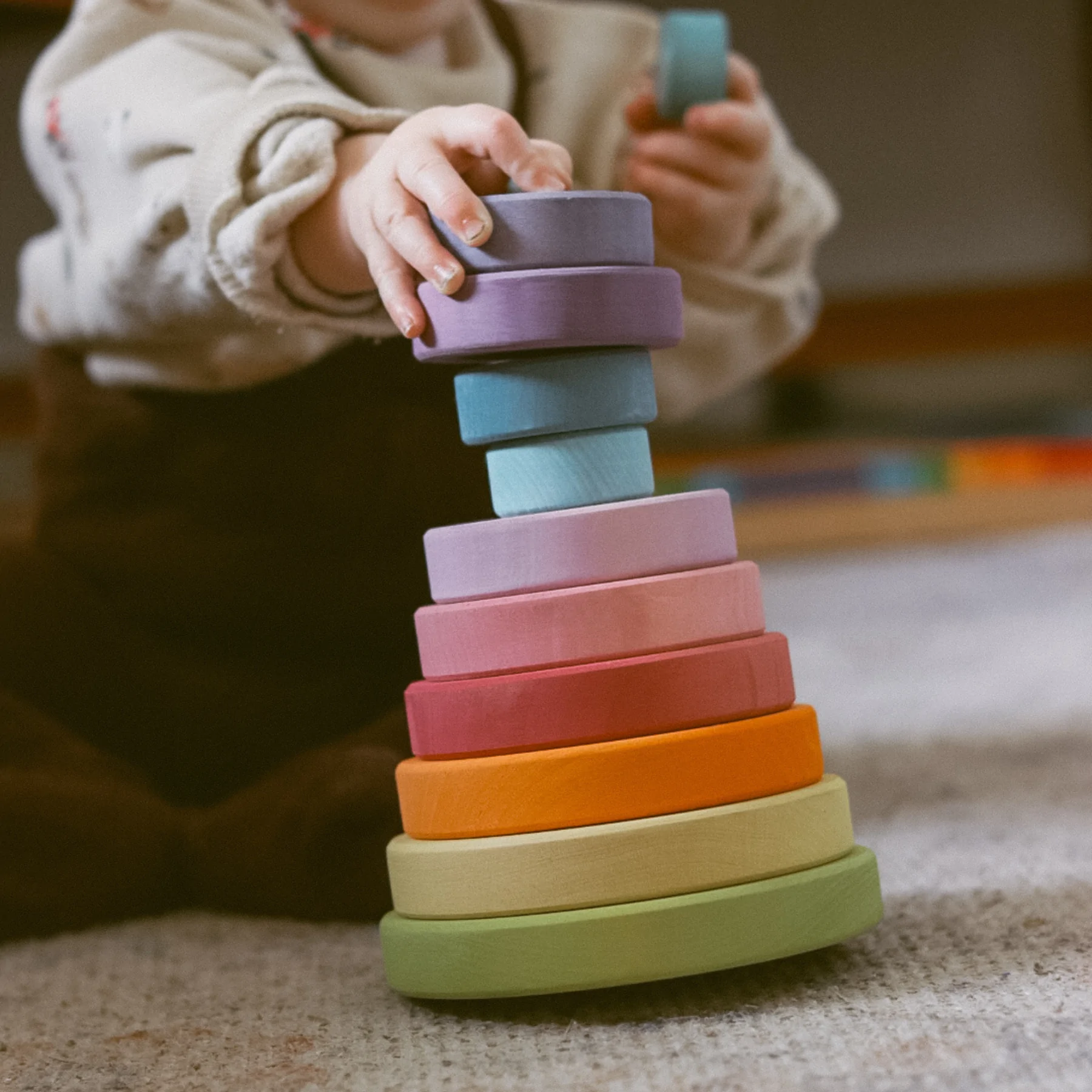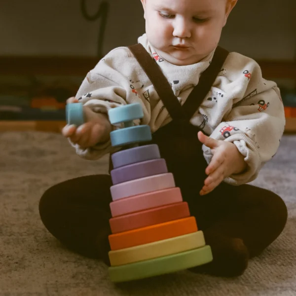 Bring joy, beauty, and learning into your child’s playroom with the Grimm’s Large Pastel Conical Tower – a gentle invitation to stack, sort, and explore. 🌸✨