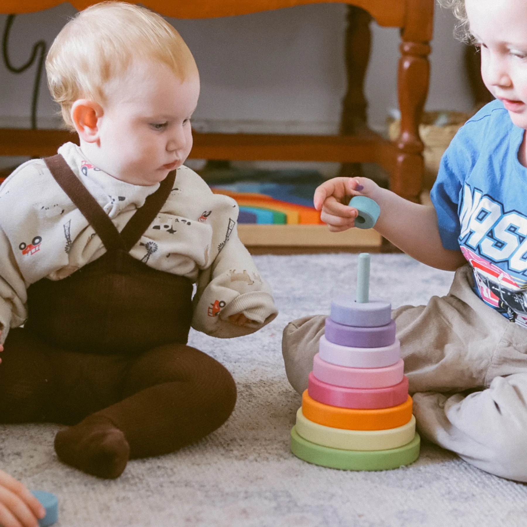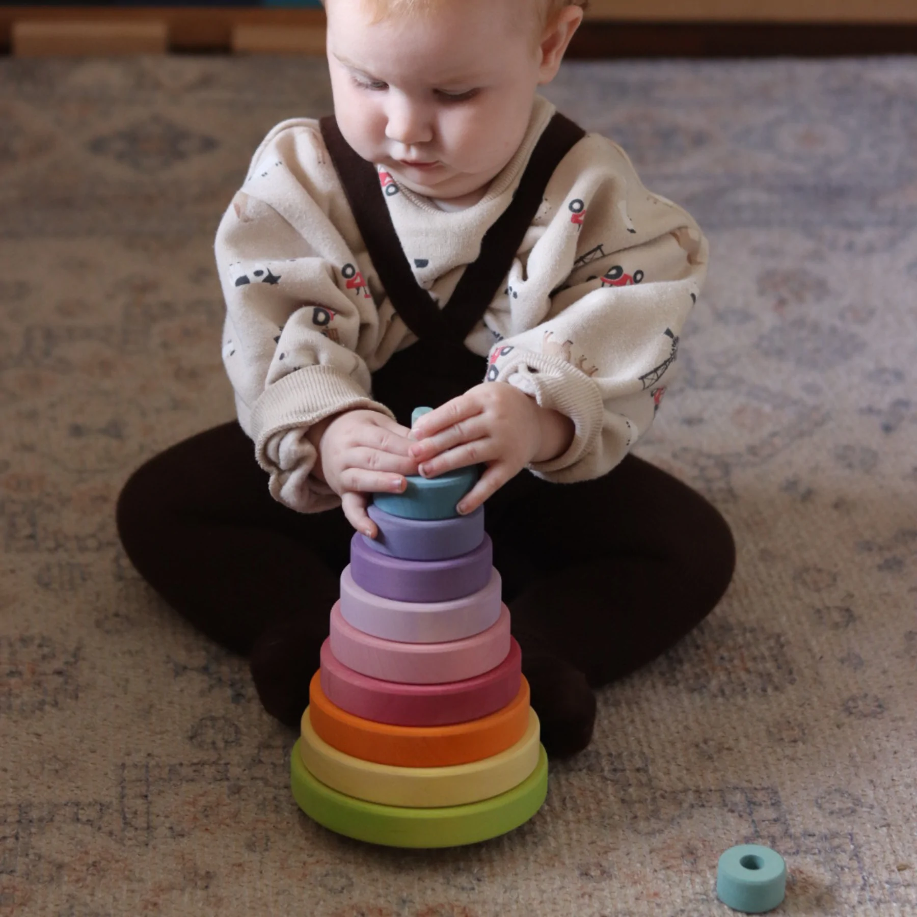 With its charming pastel tones and natural wooden texture, this stacking toy turns early learning into calming, sensory-rich play. First released in 2018, it has become a beloved heirloom-quality toy across homes and classrooms.