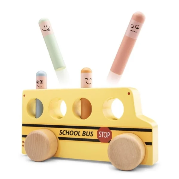 Crafted from durable, sustainably sourced wood and finished with child-safe, non-toxic paints, this engaging toy combines hands-on play with skill development. Children will love the simple yet satisfying pop-up action while also enjoying role play as the bus driver taking friends to school.