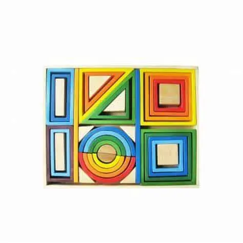 Unleash creativity with our all-in-one Rainbow & Nesting Blocks – a perfect building set designed to offer endless opportunities for exploration, creativity, and skill development. This carefully crafted set features a wide range of hollow blocks in various shapes and vibrant colors, encouraging children to experiment with stacking, sorting, and building while learning about shapes and color concepts.