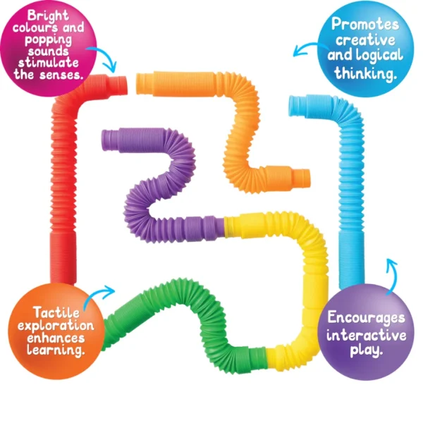 The vibrant rainbow colours make them appealing for group activities, colour recognition games, and imaginative builds. Whether used in a classroom, therapy session, or at home, these pipes invite curiosity, creativity, and calm.