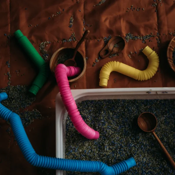 Each set includes six vibrant tubes in green, pink, blue, orange, yellow, and purple – ready to engage curious minds and busy hands. Whether used in a calm-down corner or as part of sensory play activities, these tubes are guaranteed to bring smiles and giggles!