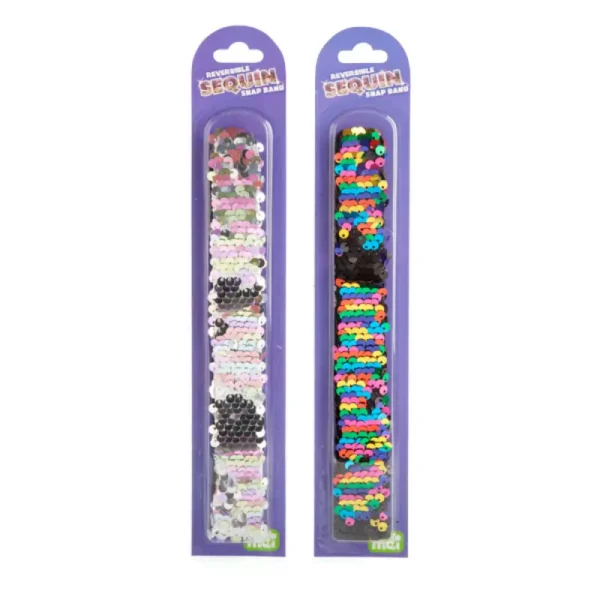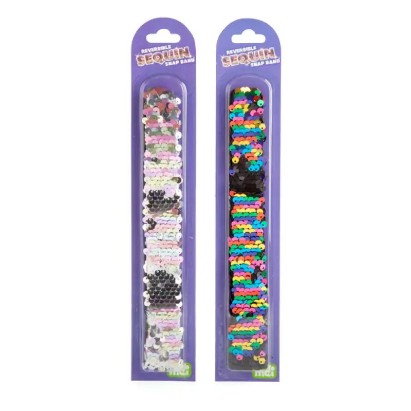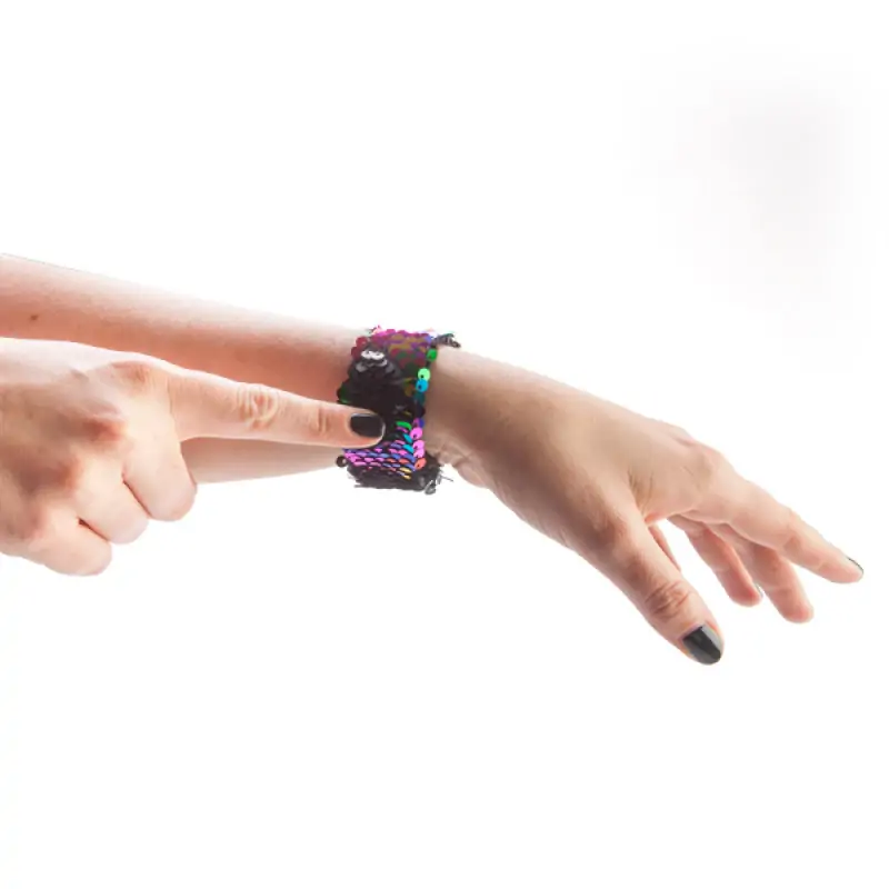 Snap it on and get flipping. The Reversible Sequin Snap Band is a playful wearable fidget that combines sparkle, colour changing fun and satisfying sensory play. Simply tap it against your wrist and it curls into place, ready to wear.
