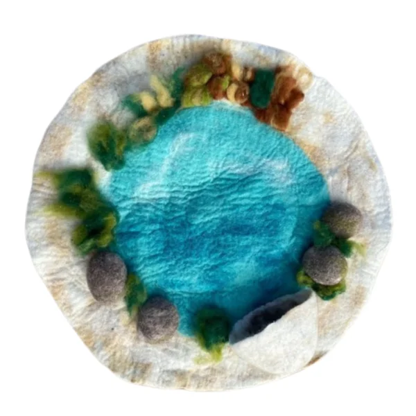 Dive into the wonders of the sea with the Rockpool Mat! 🌊 This beautiful mat features a rockpool surrounded by rocks, a cave, and sandy shores, all circling a vibrant turquoise sea. At approximately 40cm in diameter, this mat provides a captivating and interactive space for imaginative play, perfect for young explorers to discover the treasures of the ocean.