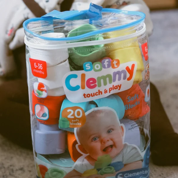 Ignite your little one’s senses with the Clemmy Touch & Play 20-Piece Block Bag – a colourful, tactile building set designed especially for babies and toddlers. These ultra-soft, slightly scented blocks are perfect for little hands to grasp, stack, and explore in a safe and engaging way.
