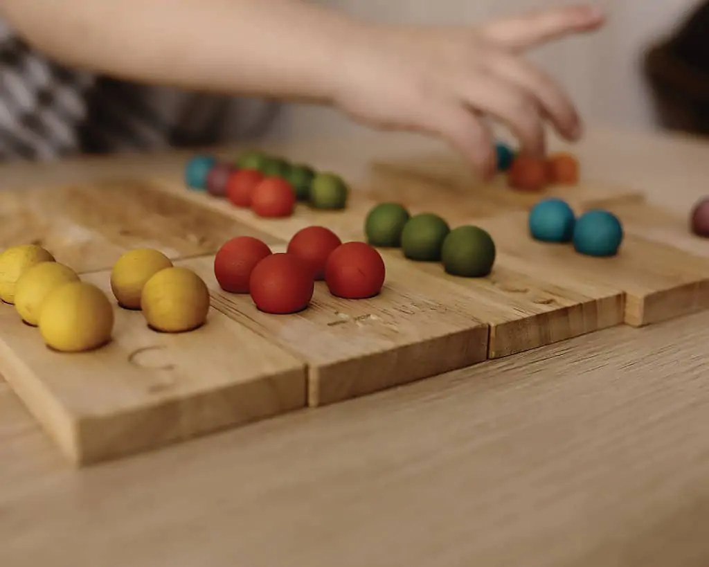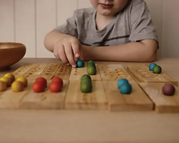 The numbered boards and small coloured wooden balls make for a classic piece that will be a go-to in any play space.