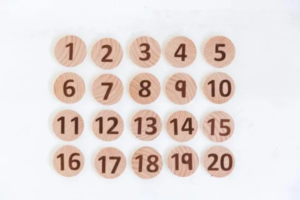 ✔️ 40 wooden number discs, featuring matching pairs from 1-20