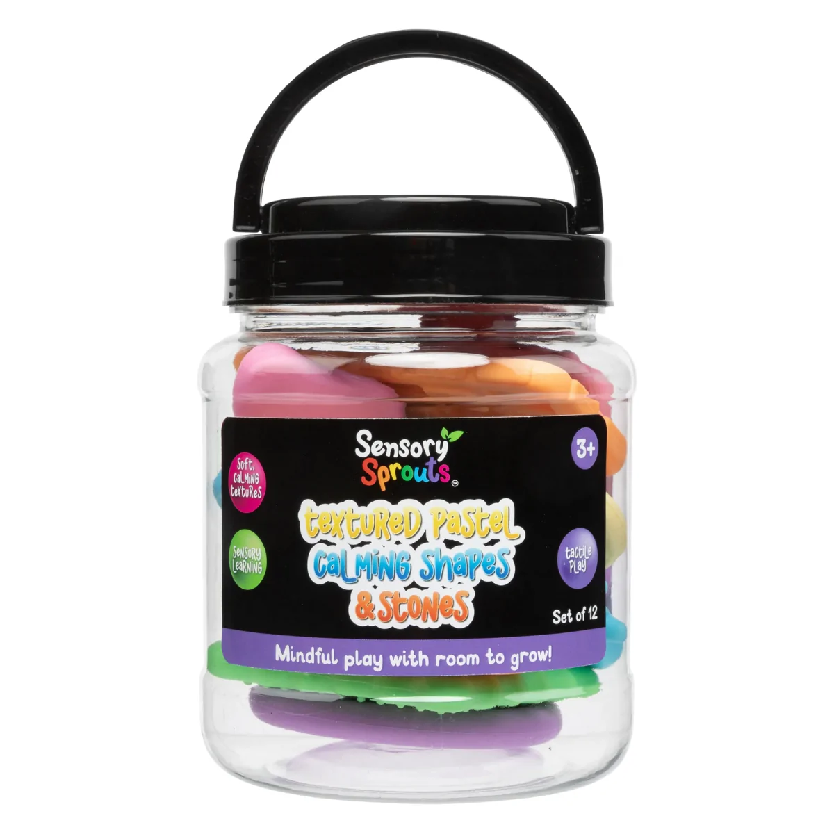 Designed to comfort and engage, the Textured Calming Pastel Shapes and Stones set includes 12 beautifully crafted pieces in soft, calming hues. Each shape features a unique texture, inviting quiet tactile exploration that supports sensory regulation and emotional wellbeing.