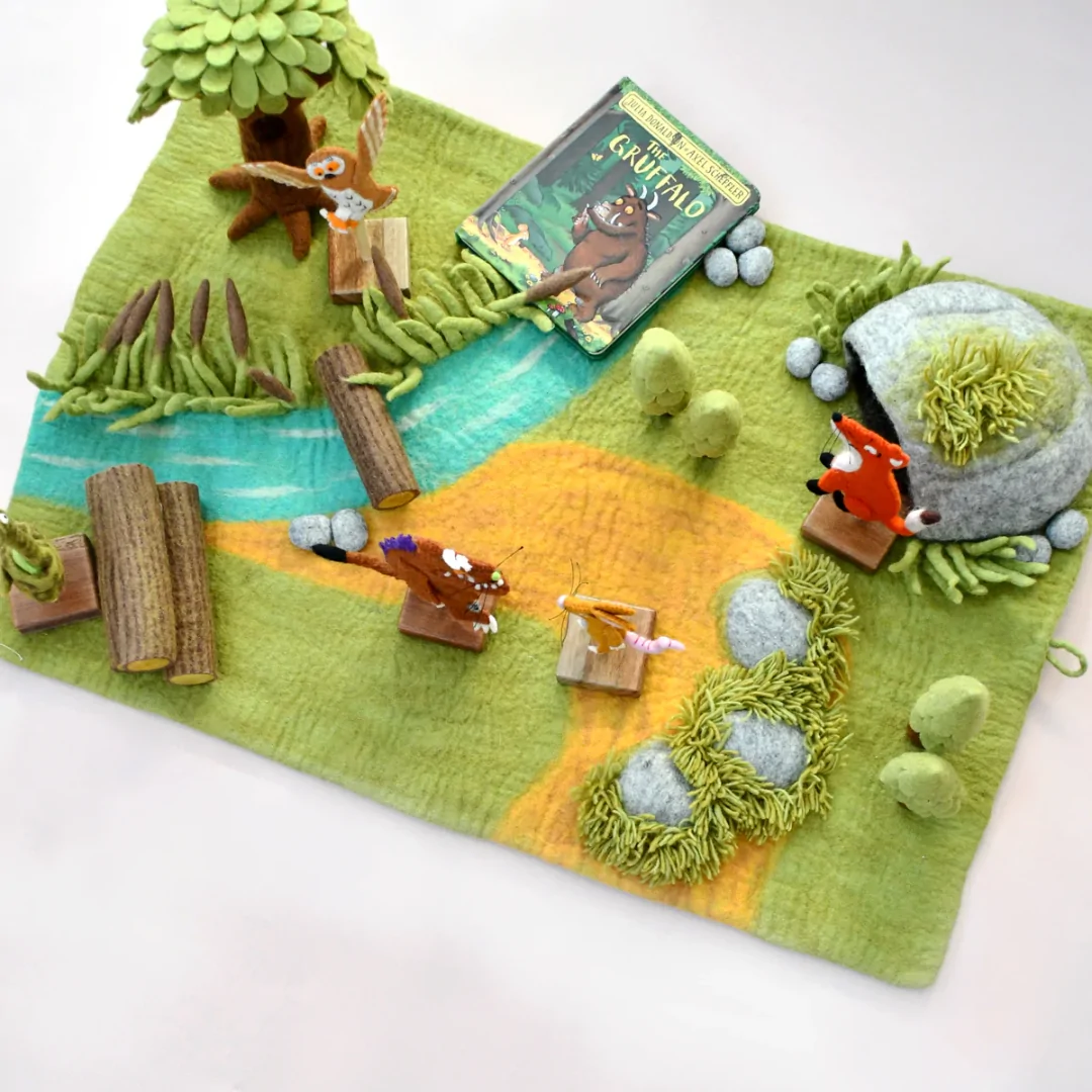 Featuring all the key elements from The Gruffalo—including the log pile house, treetop, river, and deep dark woods—this mat sets the stage for rich storytelling, sensory play, and imaginative fun. Pair it with your Gruffalo figurines or finger puppets for hours of educational, screen-free play.