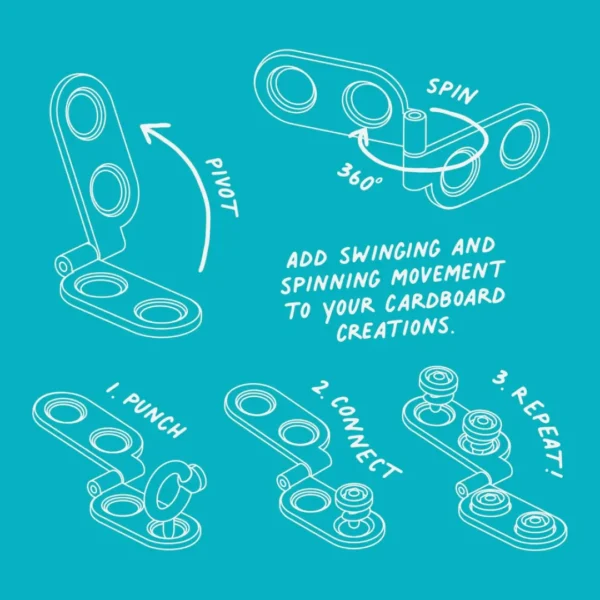 Children can explore movement, design functional joints, and add interactive elements to their cardboard builds. From doors and drawbridges to robots with moving arms, the Spin-Hinge brings imagination to life while encouraging problem-solving, creativity, and hands-on learning.
