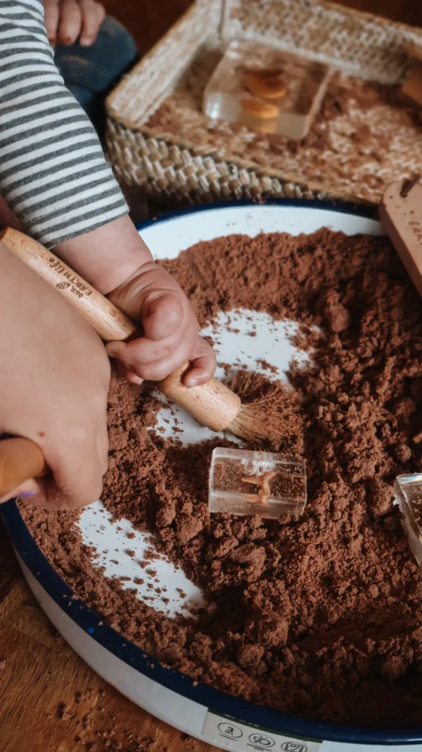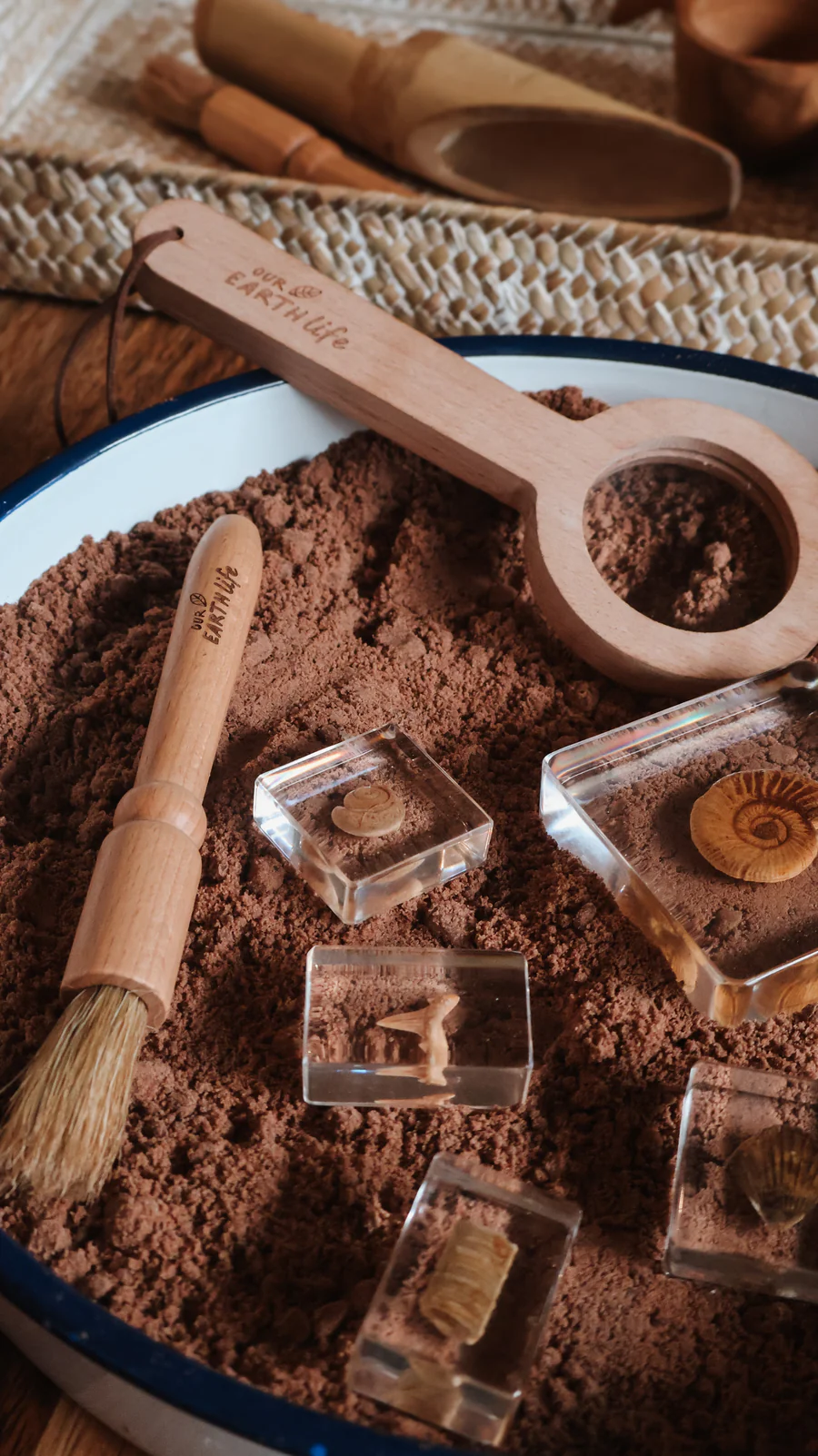 Made from smooth FSC-certified beech wood and natural bristles, this durable tool is perfect for sensory play, fossil digs and gentle discovery. Whether children are brushing away sand, uncovering hidden treasures or carefully revealing fossils, this brush supports fine motor development, coordination and a sense of care for the materials they explore.